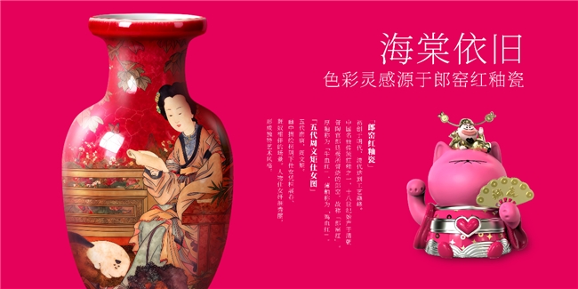 在色彩设计上,品牌同样实现了 “传统与现代的跨界”。所有色彩均源自中华名瓷名器,经过年轻化调试后应用于产品:“海棠依旧(嫣玫红)” 萃取清代郎窑红釉的华贵质感,降低厚重感、增加珠光通透度,既保留 “牛血红” 的喜气,又符合潮玩的轻盈审美;“黄金亿万(富贵黄)” 源自明代弘治娇黄釉瓷,釉色淡雅娇艳,传递富贵吉祥的寓意;“玉瓷凝雪(珠光白)” 则提炼北宋定窑白釉的温润特质,加入细闪工艺,适配年轻人对 “轻奢质感” 的追求。每一种色彩都绑定对应的古代画作故事,如 “富贵黄” 关联宋代《富贵花狸图》,“珠光白” 呼应明代《壶中富贵图》,让用户在欣赏色彩的同时,感受中华艺术的魅力。