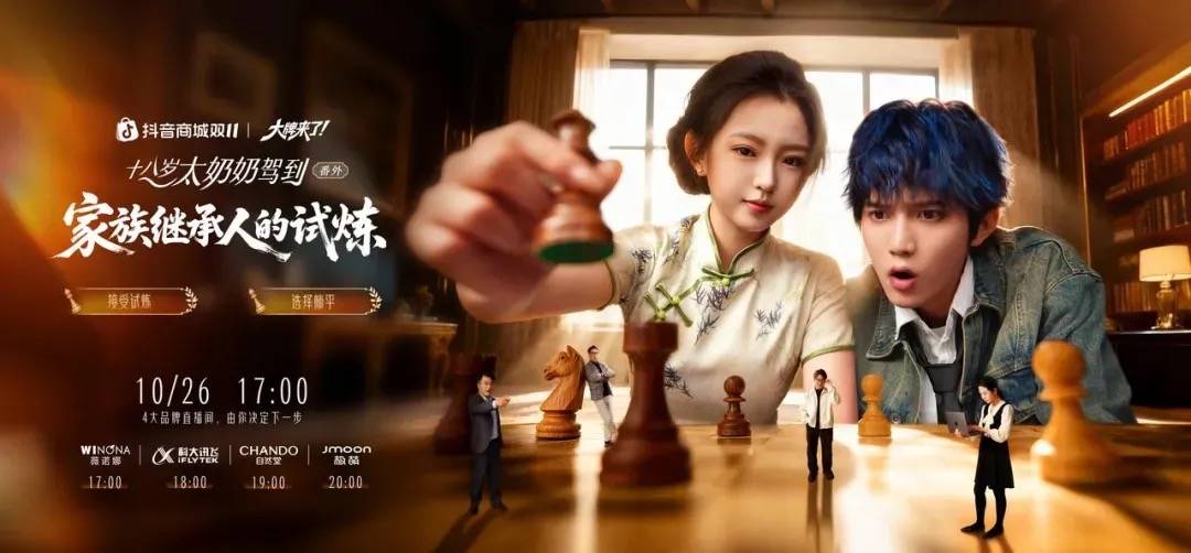 今年双11,抖音电商“大牌来了”联手短剧IP《18岁太奶》,把科大讯飞等四大品牌的直播间,巧妙化作热门短剧剧场。由剧中主角“重孙纪舟野”和“太奶奶”现场演绎“双11限定的番外”,成功将剧粉转化为品牌直播间的粉丝。